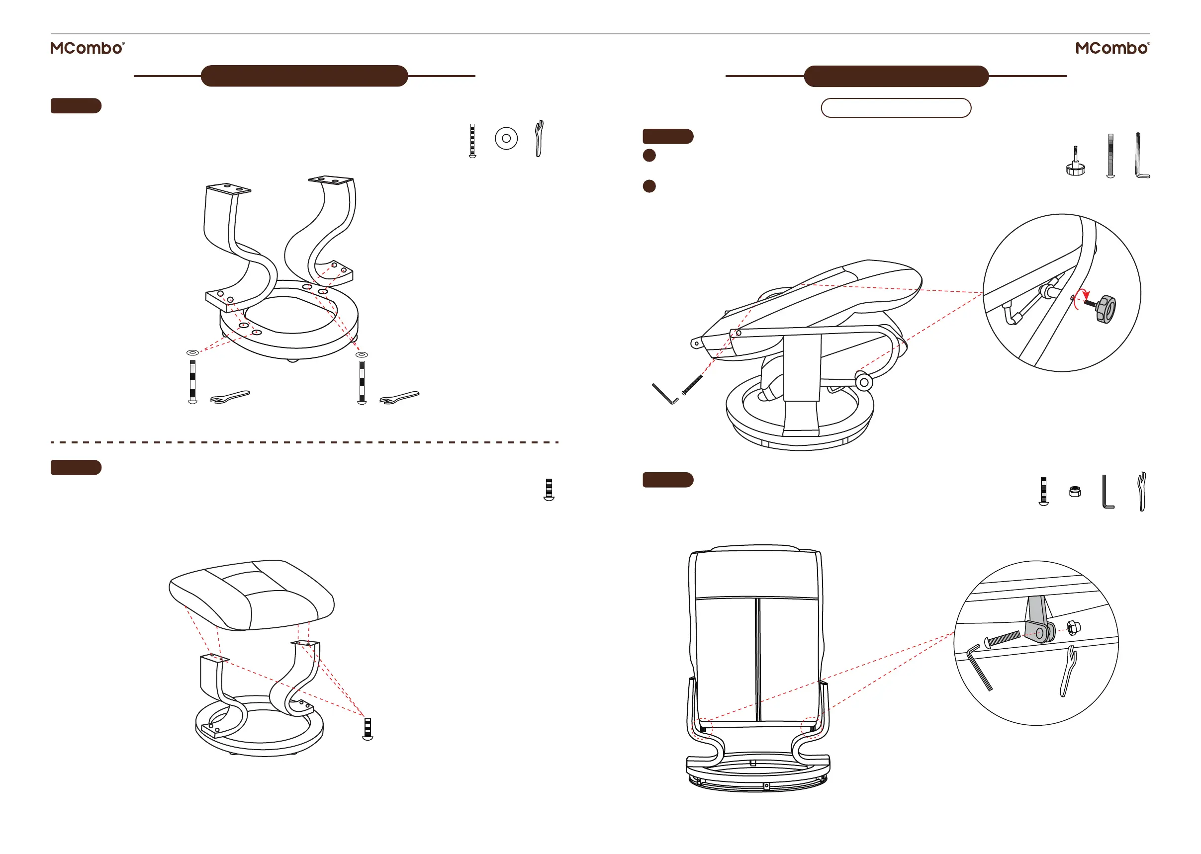 Use 4 Bolts #G and 4 Washers #O to fix 2 Ottoman Legs #E to Ottoman