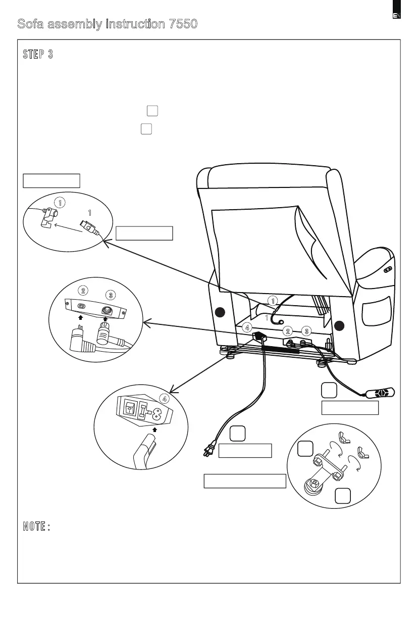 Connect cable ① and 1 of the same color from the backrest and cushions.