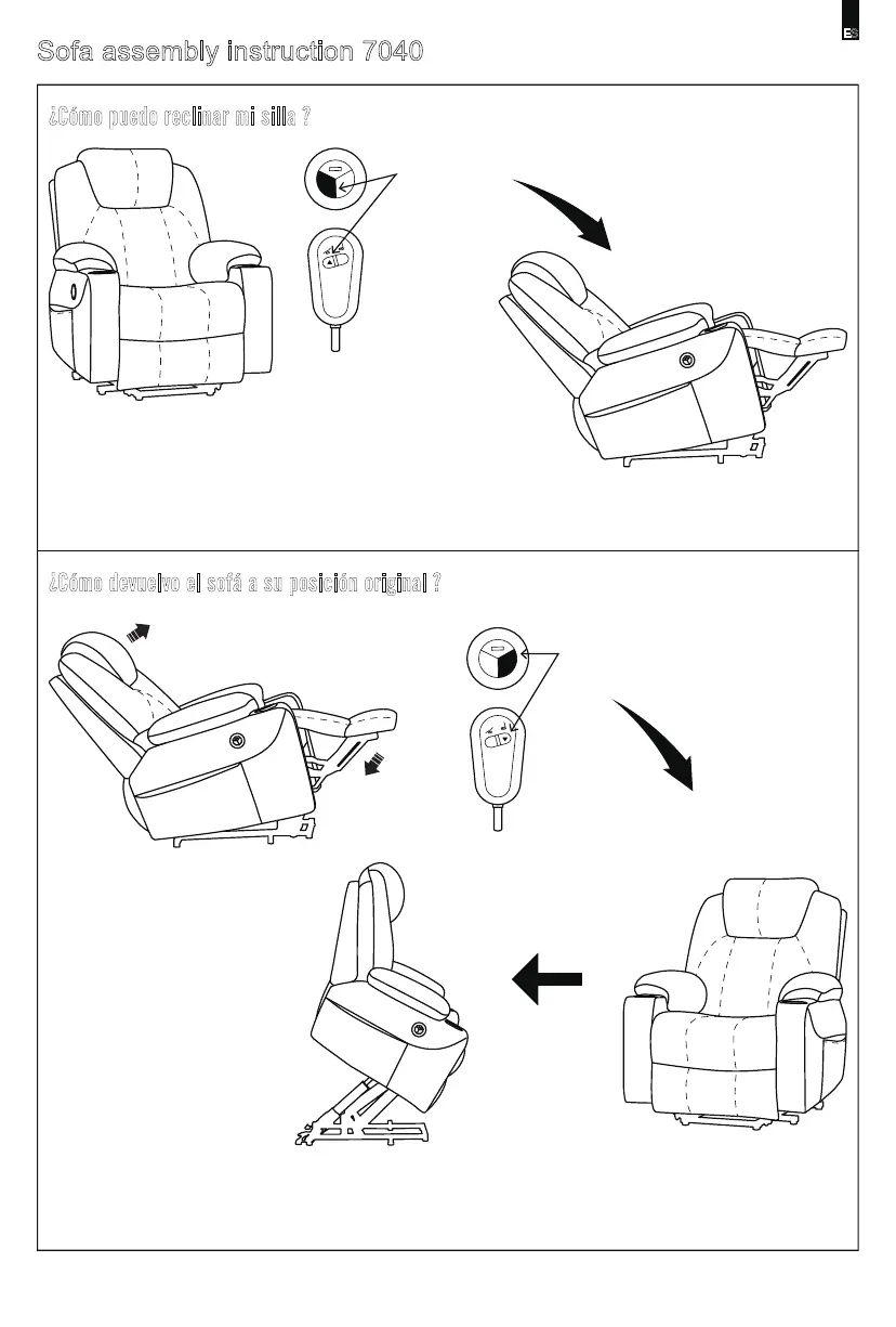 2. Si mantiene el botón pulsado, el sofá puede inclinarse hacia delante.