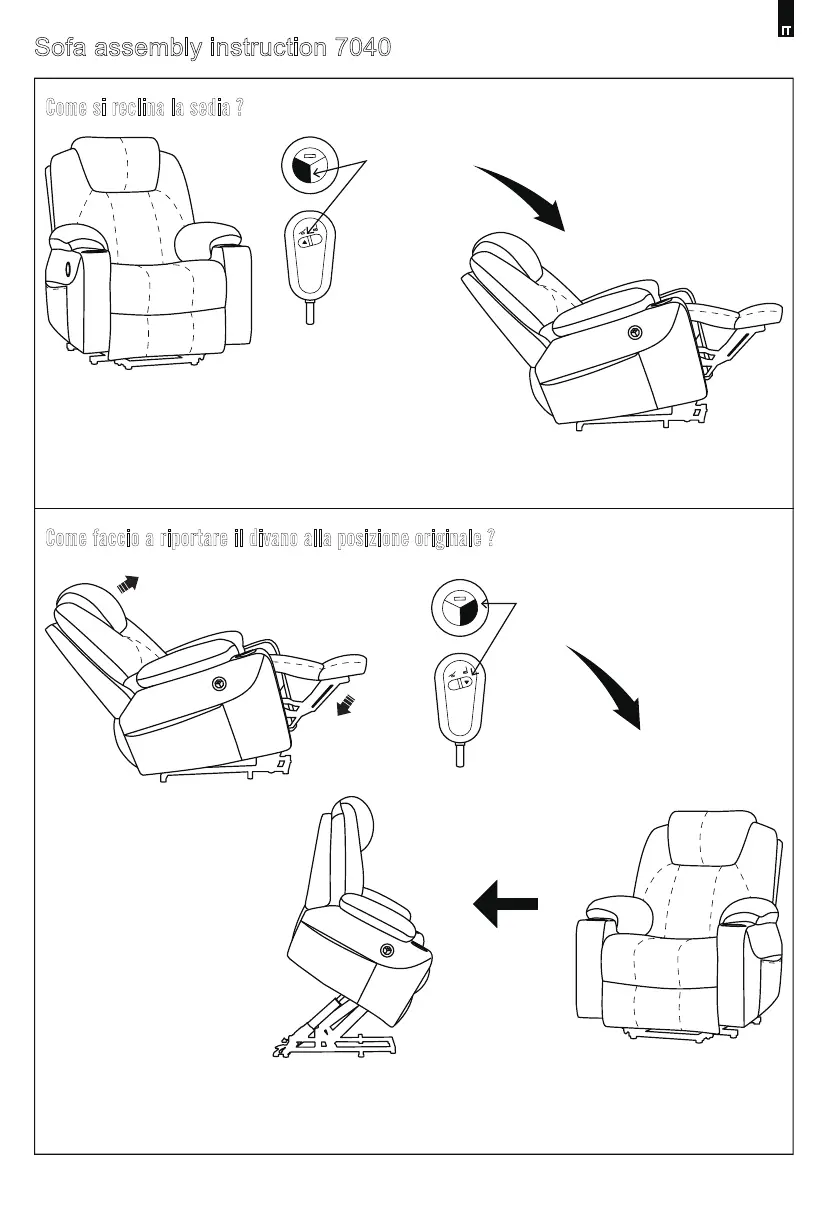2. Tenendo premuto il pulsante, il divano può essere inclinato in avanti.