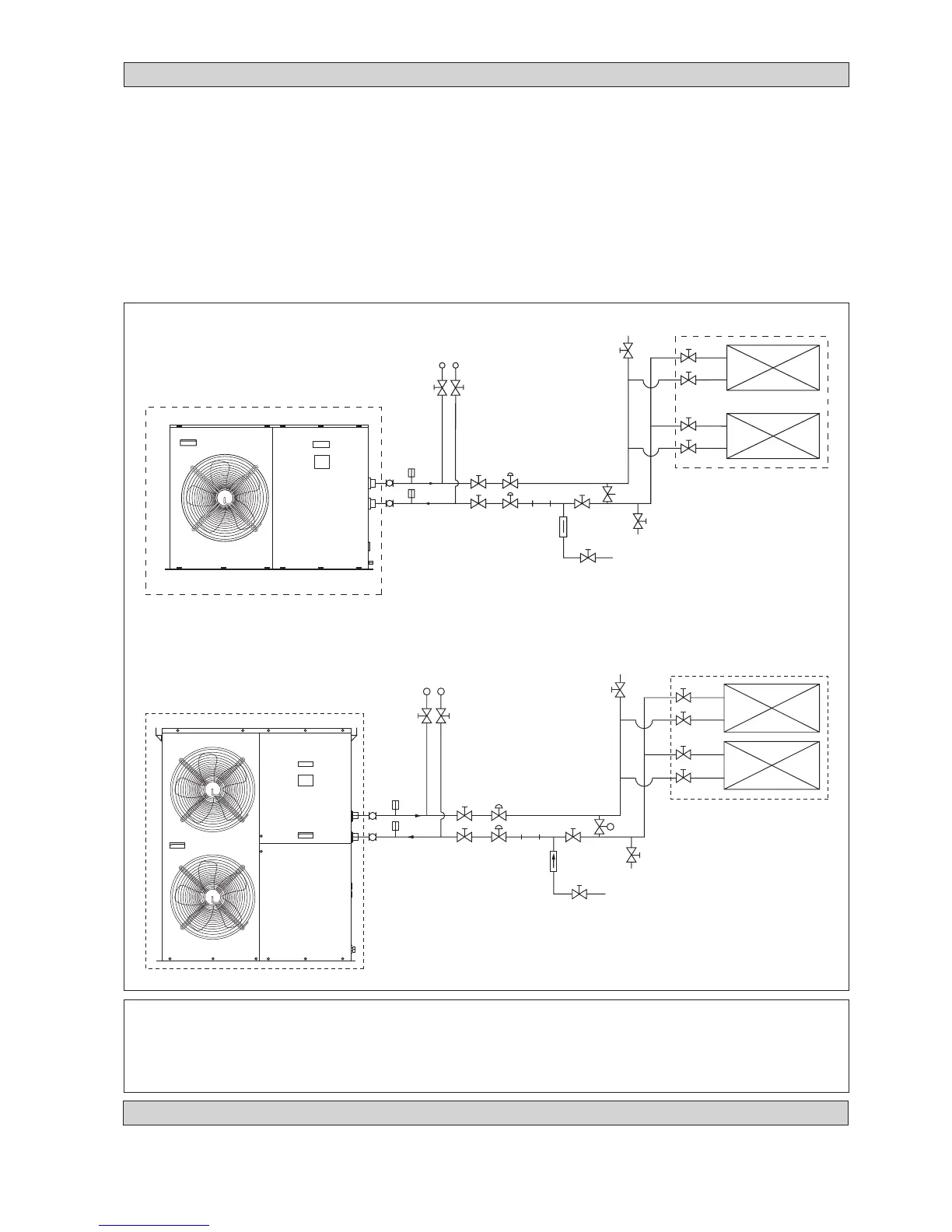 • Fill up the water circuit after connecting the pipes and equipment. Check water leakage at all connections and joints. Do