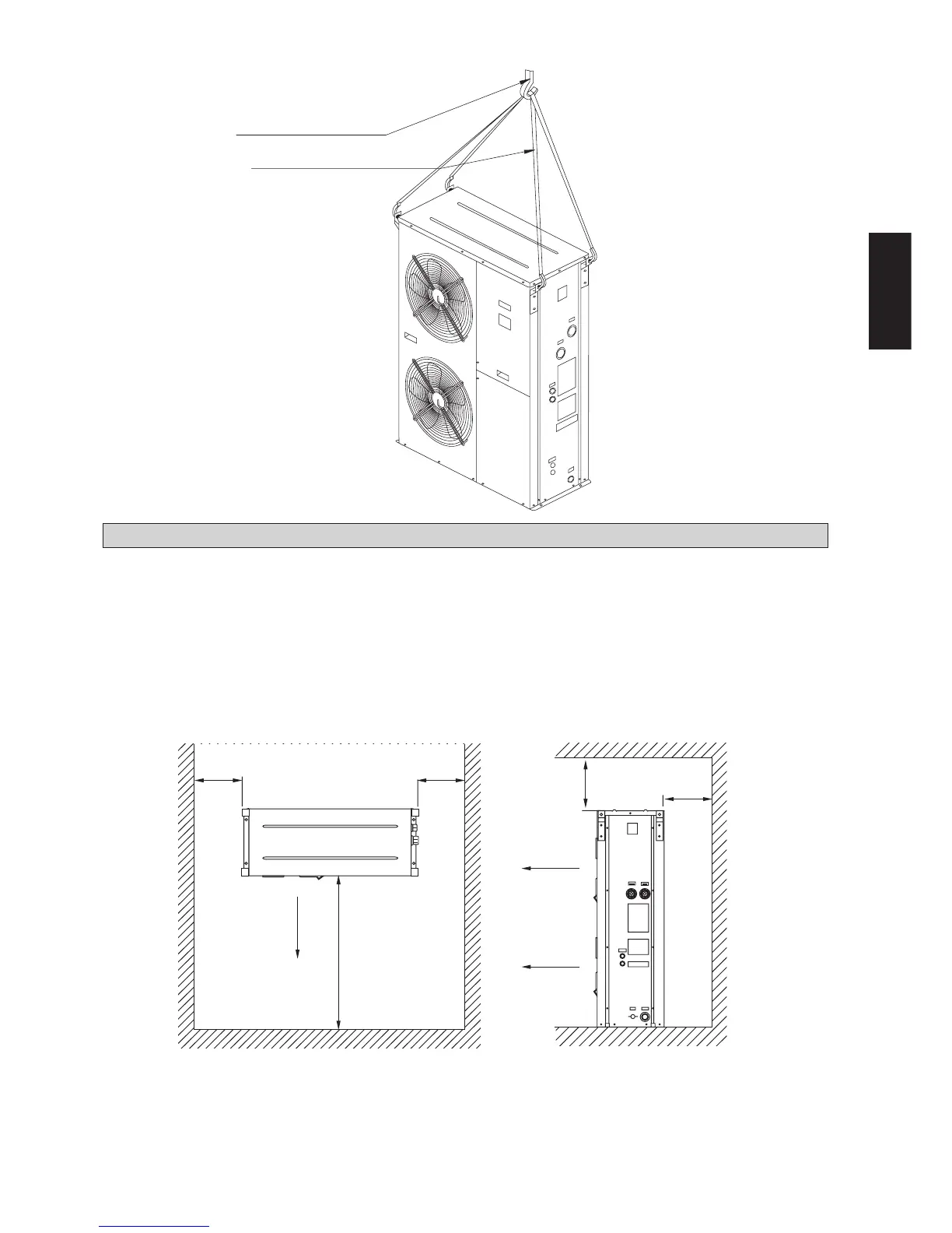 • Lors de l’installation, prévoir un espace libre pour la ventilation, l’entretien et la maintenance de l’unité. Voir les figures