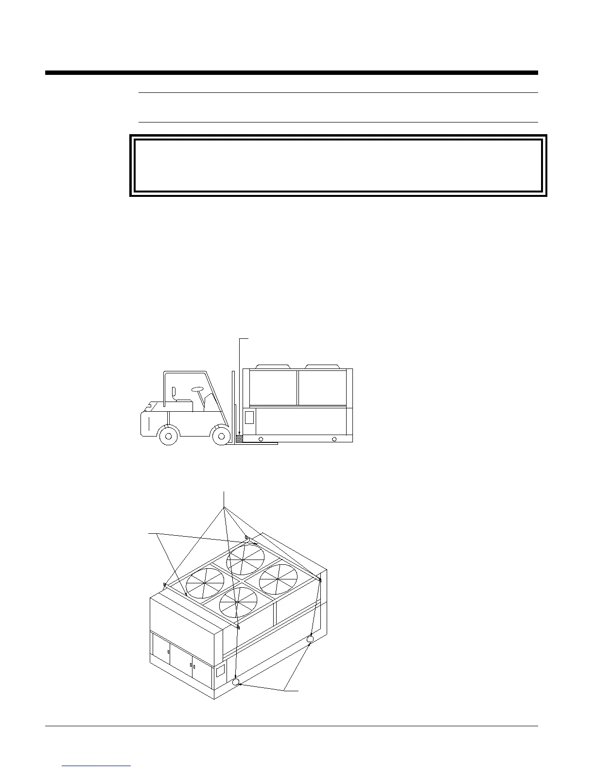 spreader bars and cables to prevent damage to the condenser coils or cabinet (see Figure 2).