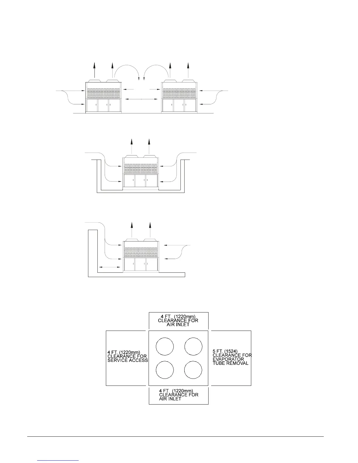 Distance less than 10 feet (3048mm) can result in air recirculation.