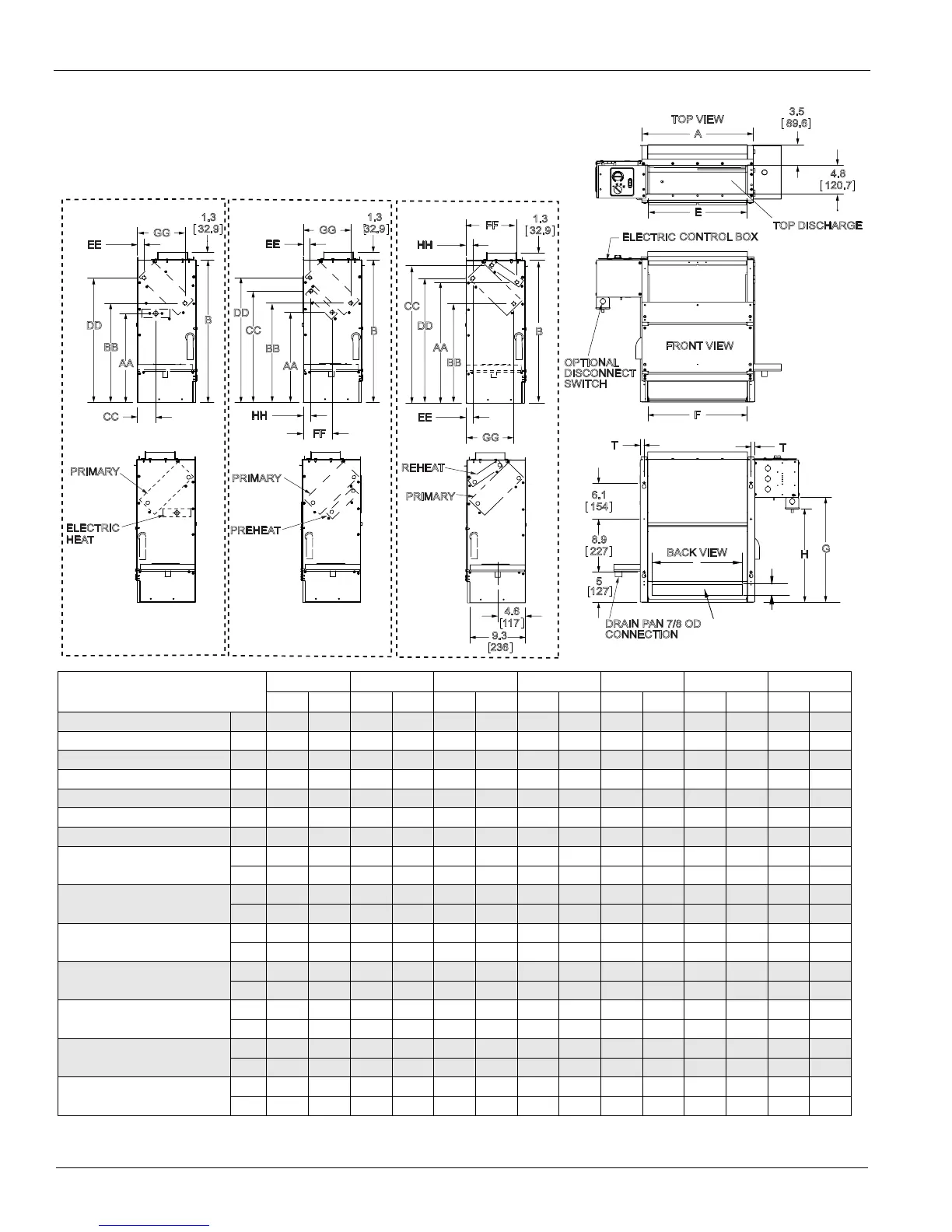 Figure 33: Dimensions: Hideaway, Top-Discharge Fan Coils