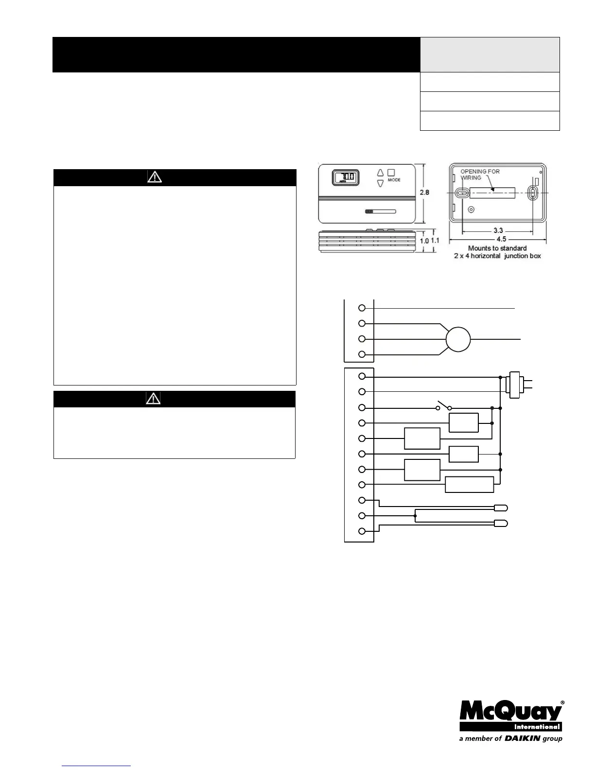 1 Install the thermostat with the two furnished mounting