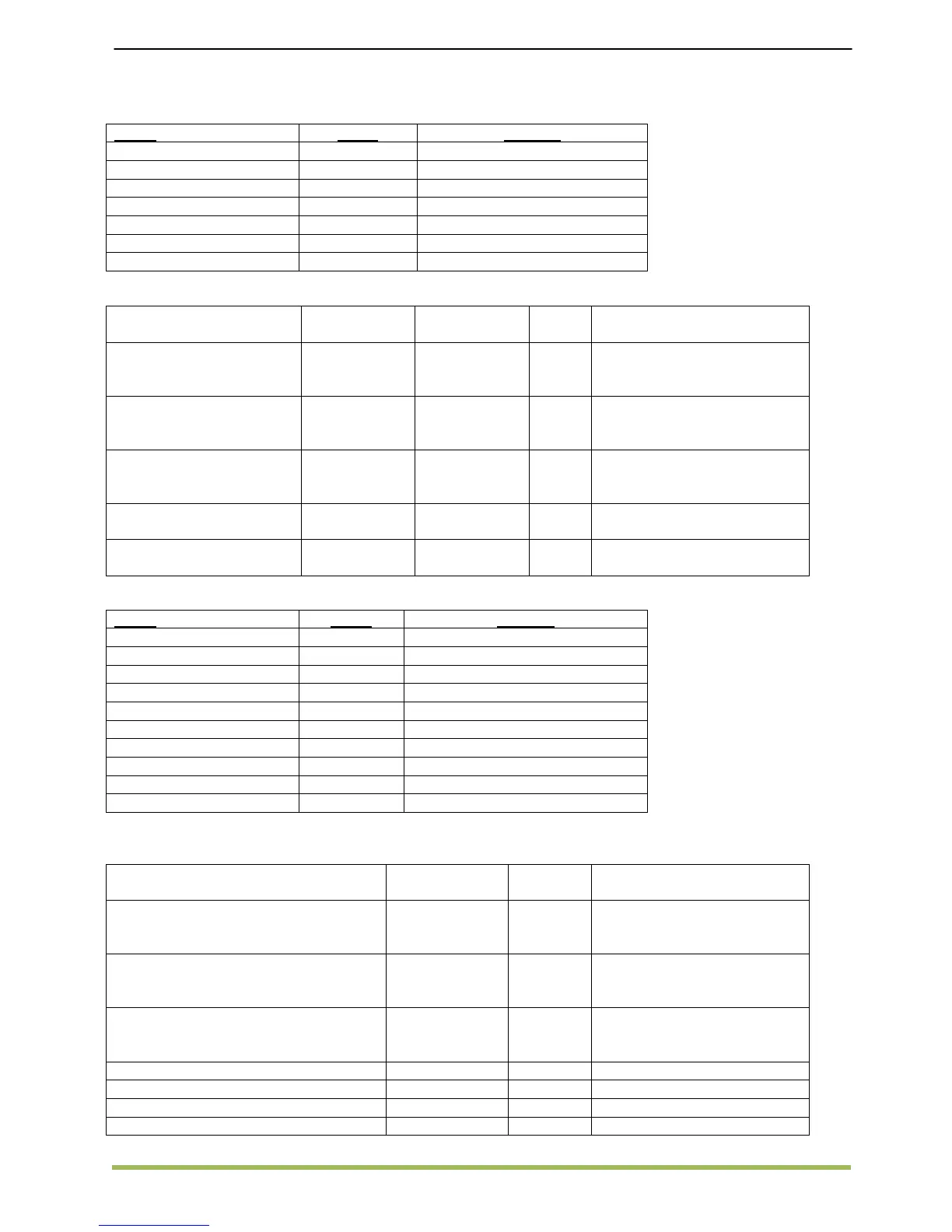 Self Diagnostic Table – W1V3