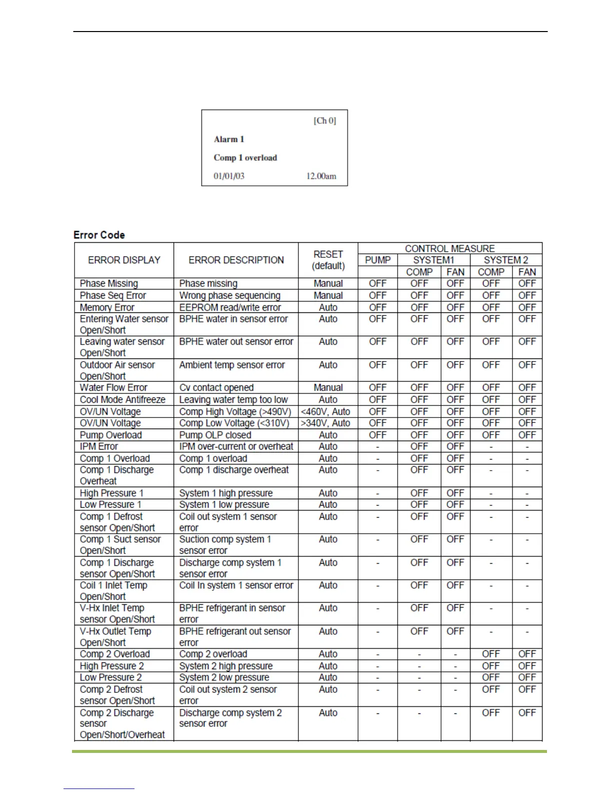 When malfunctioning occurred, the display LCD will blink. The display will show the faulty parameter