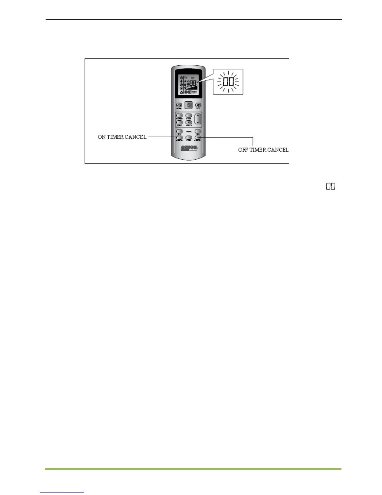 1. Hold down ON TIMER CANCEL button or OFF TIMER CANCEL button for 5 seconds, a “ ”
