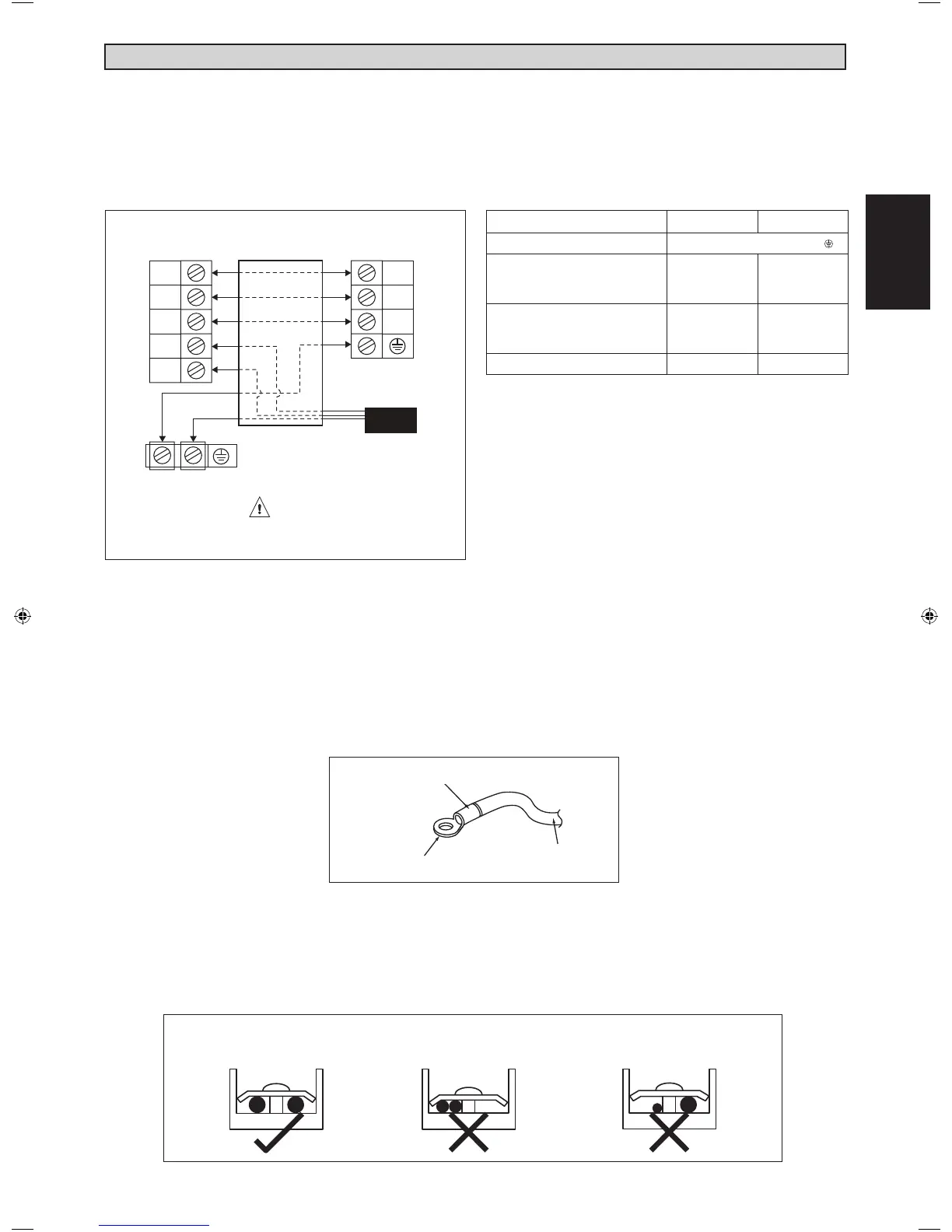 • I cavi di collegamento tra l’unità interna e l’unità esterna devono essere fi ssati utilizzando il dispositivo di ancoraggio