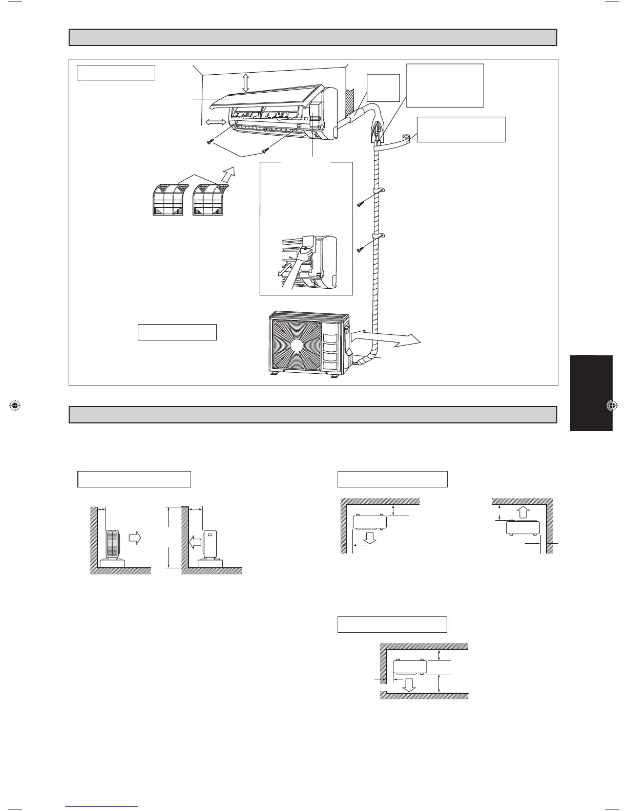 • Si un mur ou un autre obstacle obstrue l’entrée ou la circulation de l’air de l’unité extérieure, suivez les instructions d’installation