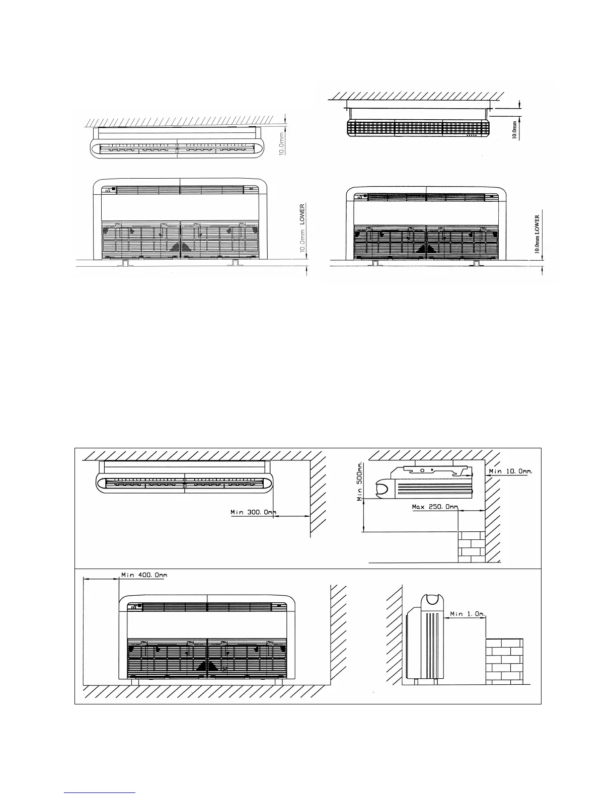 • The indoor unit must be installed such that there is no short circuit of the cool discharge air with the