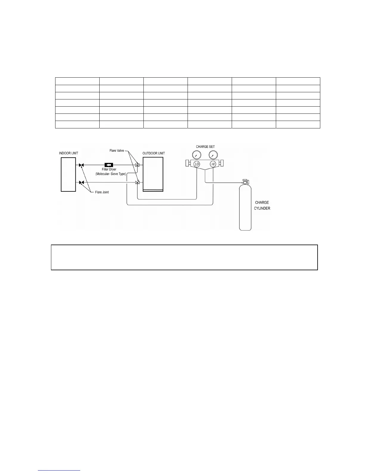 • When the piping length is more than 5m, please use the table below (unit in gram).