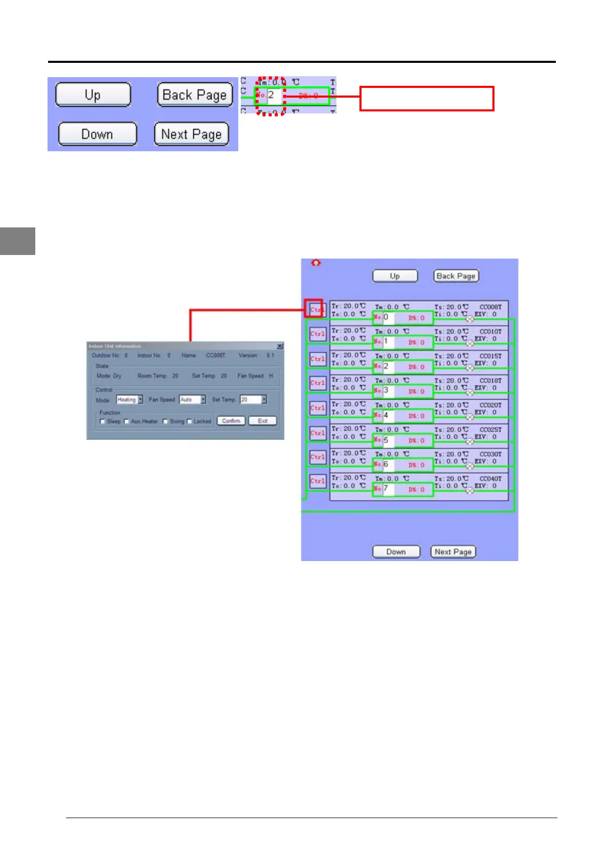 Take note that only 8 indoor units can be shown in the circuit monitor page. There are three ways to scroll to