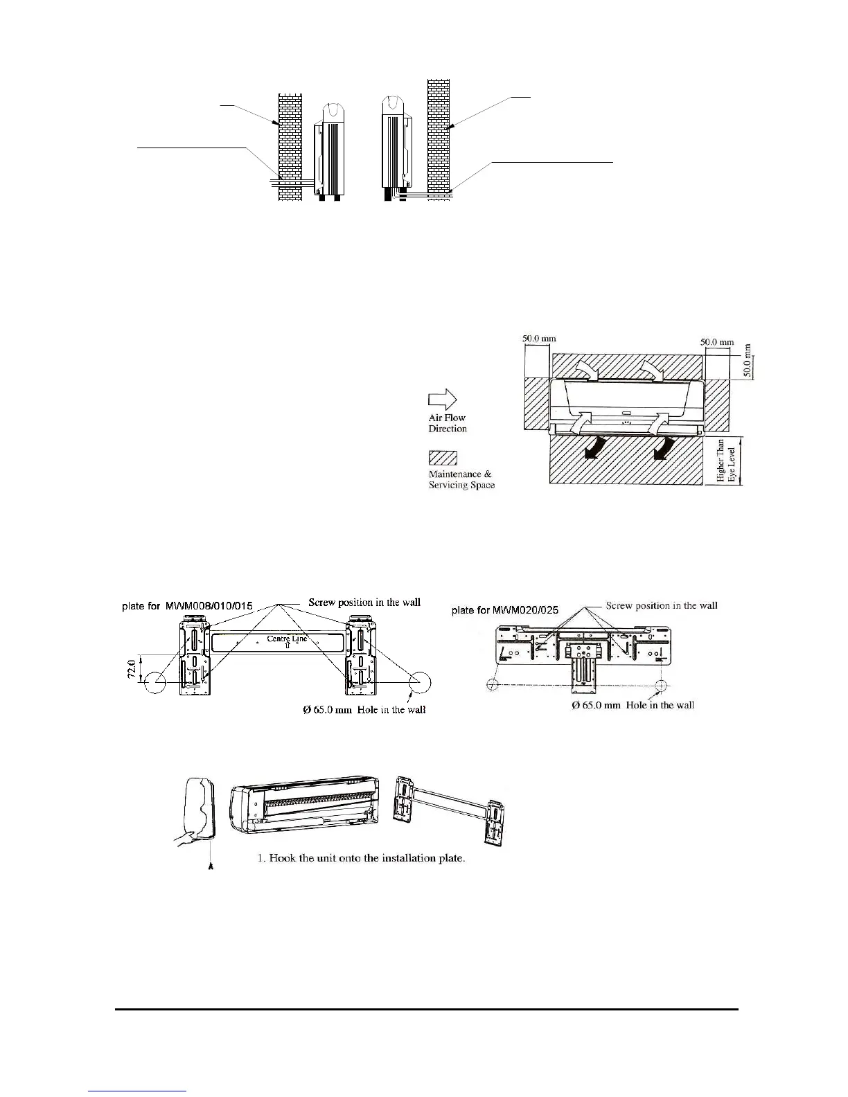 Ensure that the wall is strong enough to withstand the weight of the unit. Otherwise, it is necessary to reinforce the wall with plates,
