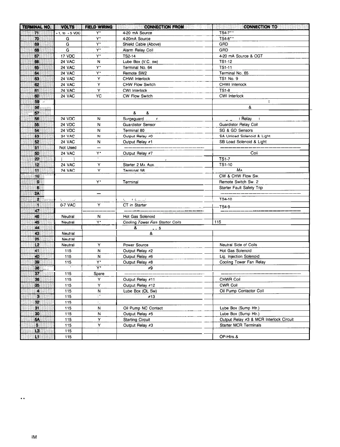 l Asterisk after Y in the Field Wiring column indicates that the device is an option. If the option is elected, Field Wiring is required