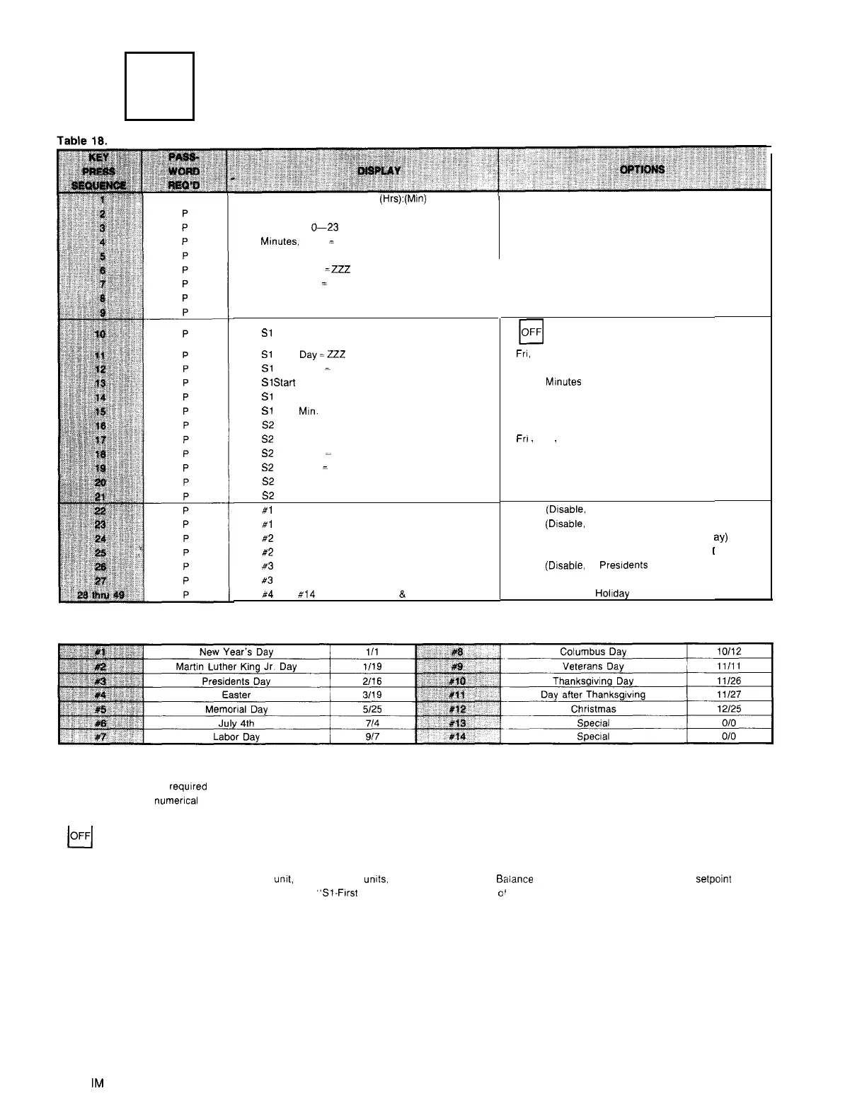 See Table 19 for Hokday programmed