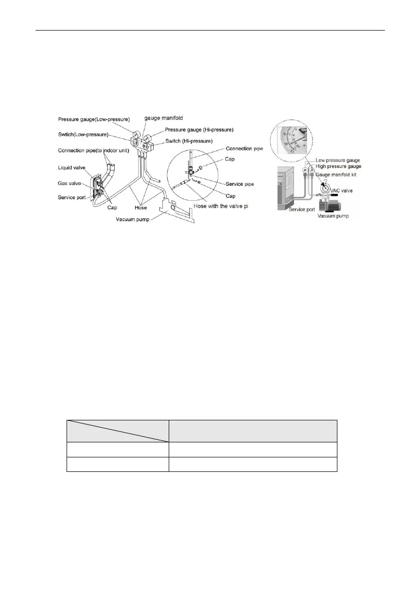 liquid valve. During evacuation, it is available to connect two hoses of the manifold