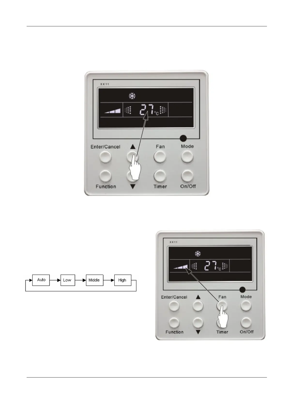 Press Ÿ or ź button to increase or decrease of setting temperature under on-state of the unit. If press either of them
