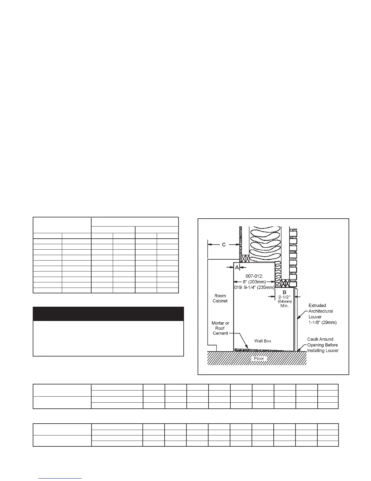 Table 3: Wall Box “B” Dimension