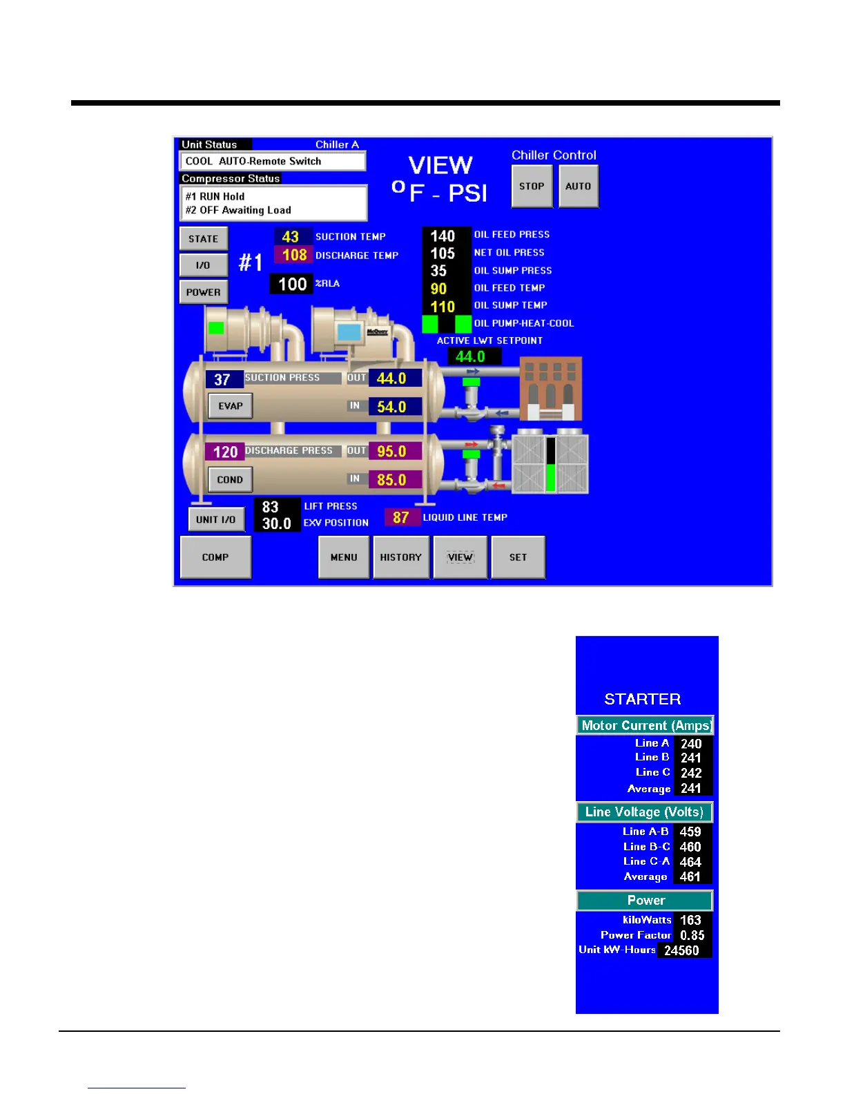The ability to view the starter(s) electrical performance and to set starter setpoints on the operator