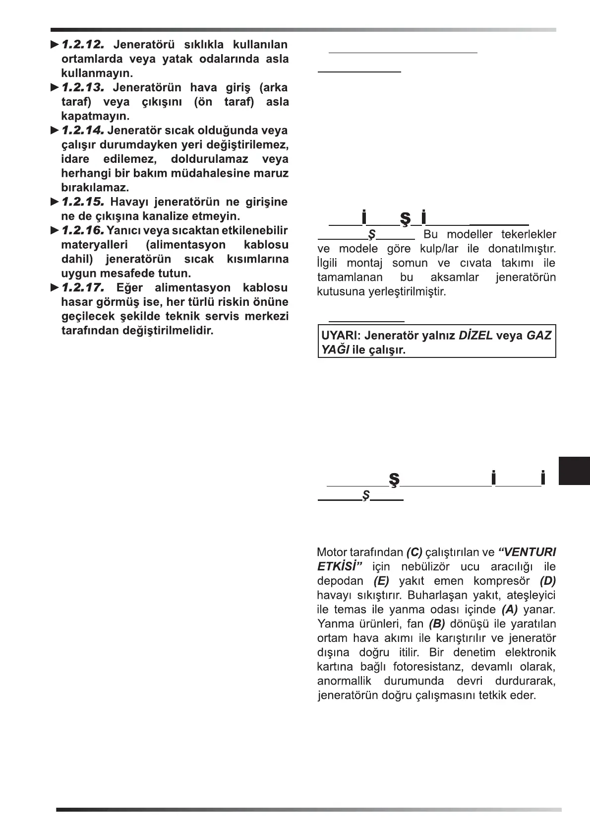 hasarları kontrol edin. Eğer jeneratör