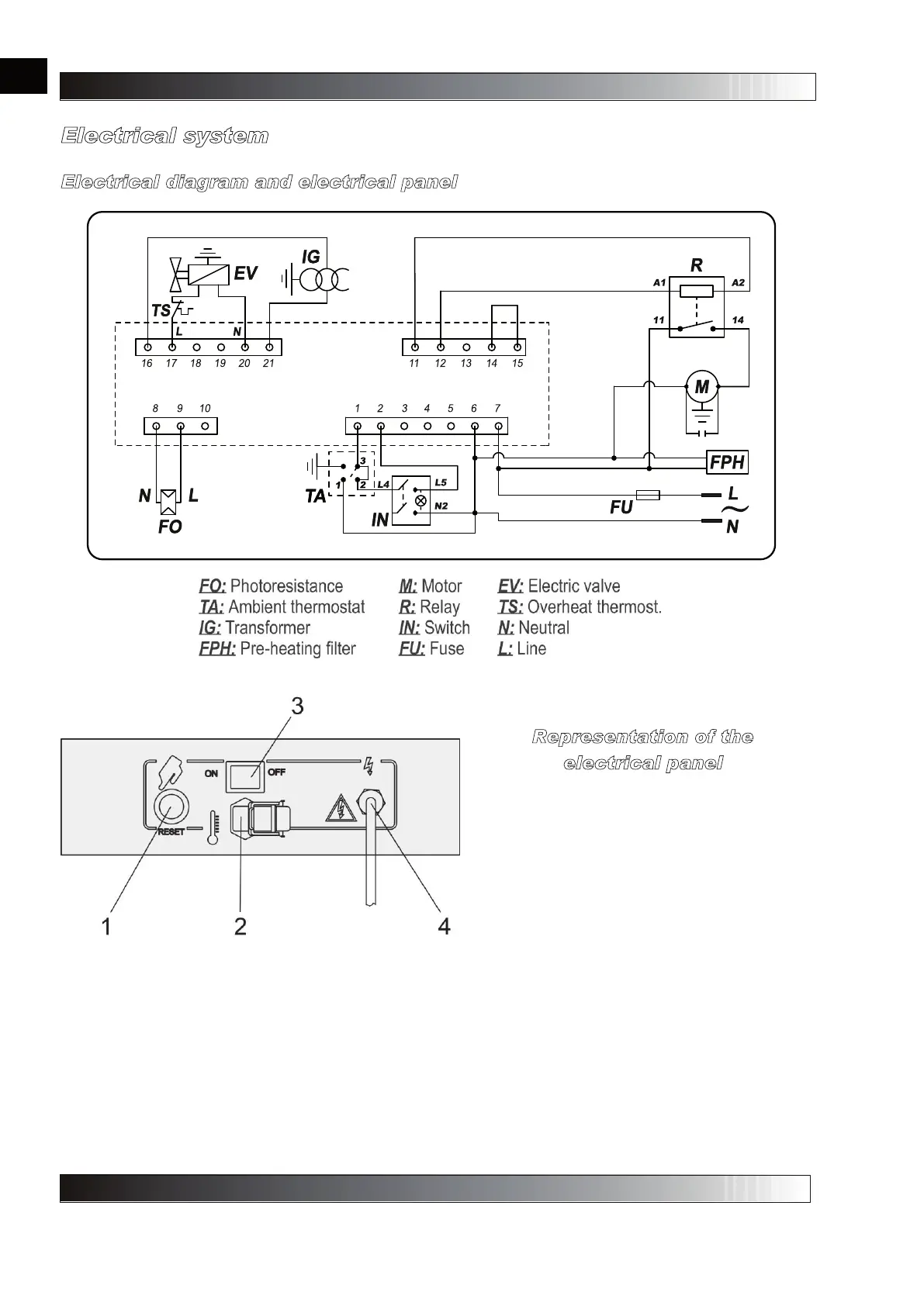 The electrical diagram below shows the electrical panel of the machine, where it is possible to distinguish