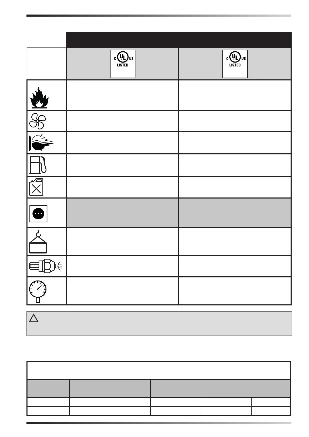 TECHNICAL DATA - TABLEAU DES DONNÉES TECHNIQUES