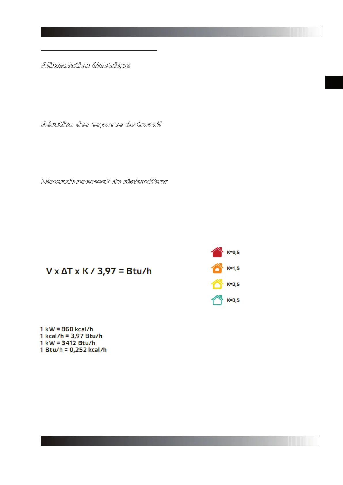 La puissance thermique du réchauffeur est calculée en fonction du volume à chauffer. Voici ci-dessous une