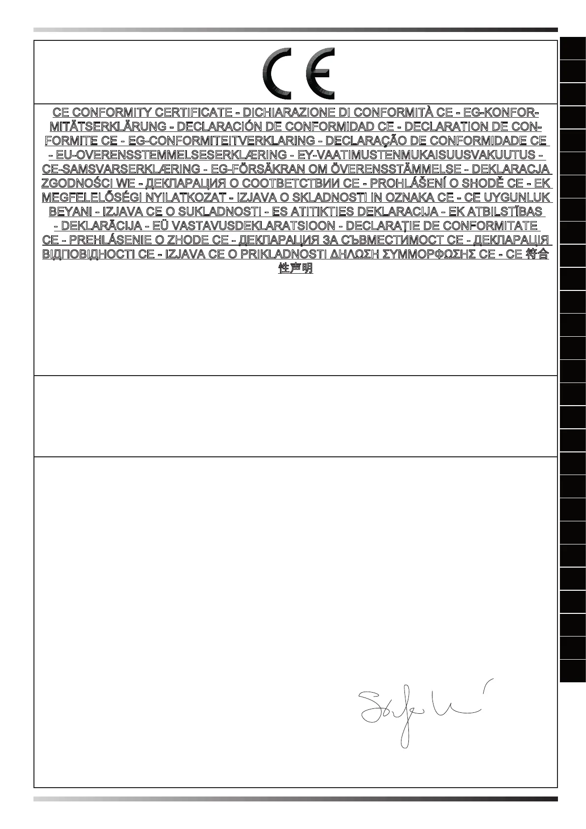 CE CONFORMITY CERTIFICATE - DICHIARAZIONE DI CONFORMITÀ CE - EG-KONFOR-