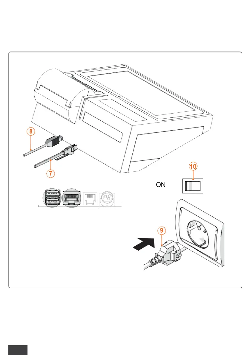 Connect the Ethernet cable in order to connect to the internet (7) and a (optional) USB