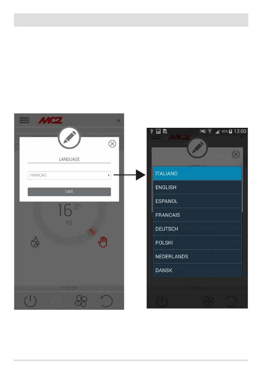 Press the SAVE button to conrm the chosen language.
