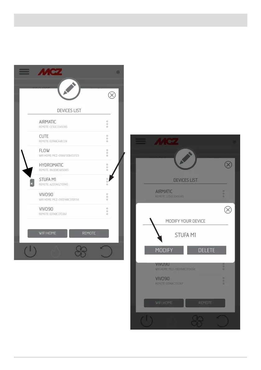 From the menu next to the congured device it is possible to access the MODIFY or DELETE function.