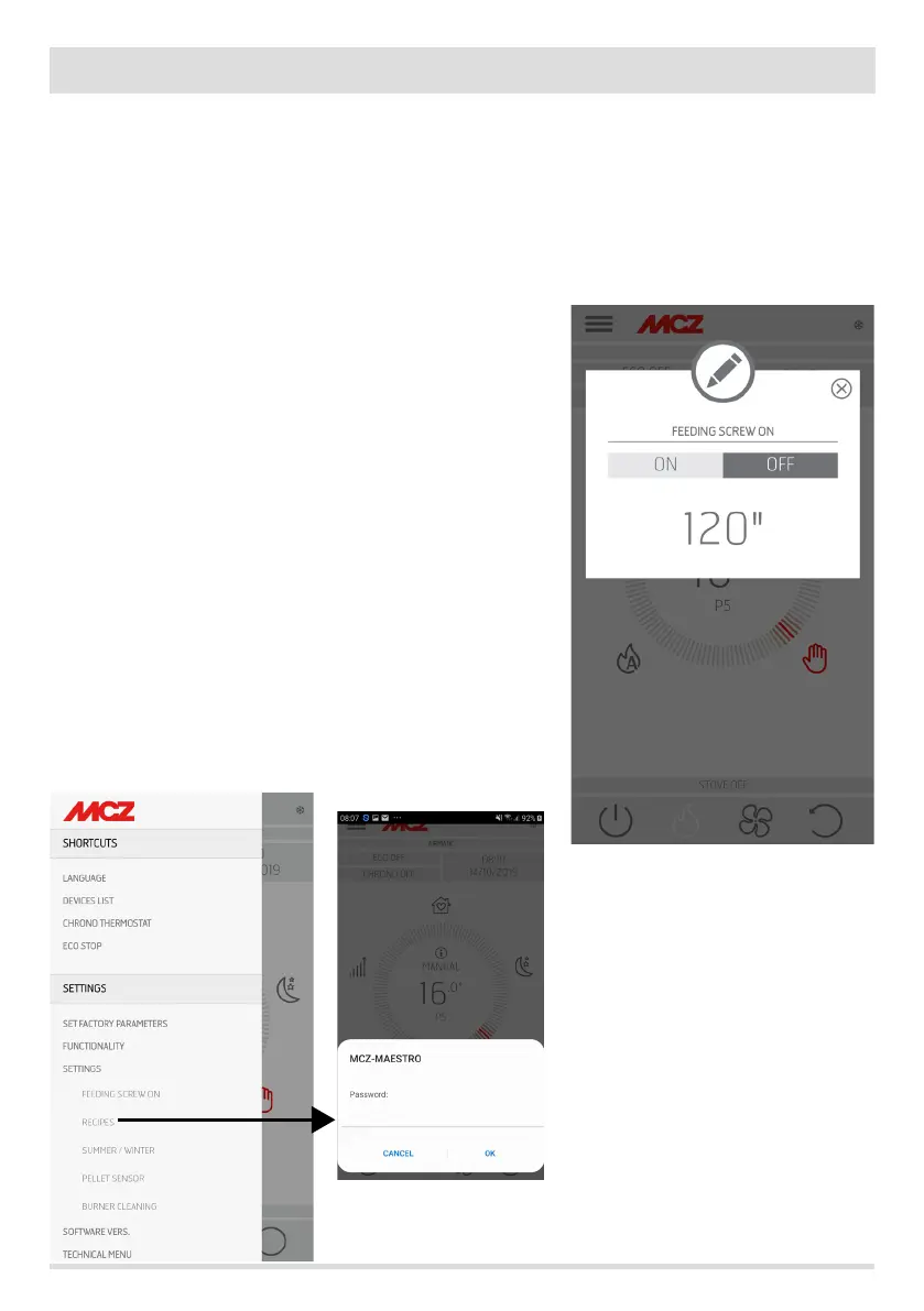 This function, which can only be activated with the stove o, enables you to load pellets
