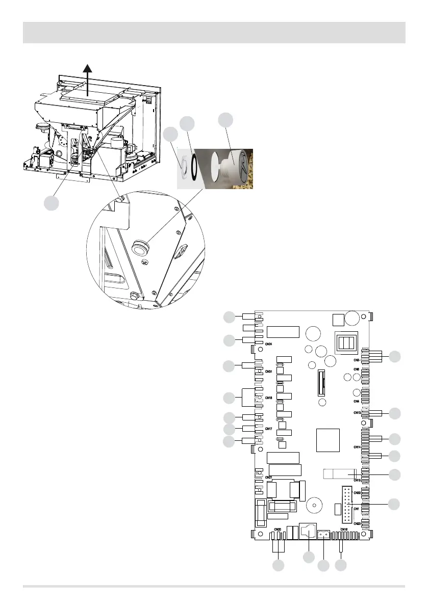 remove the cap “J” tted inside, then insert the pellet level sensor “K”
