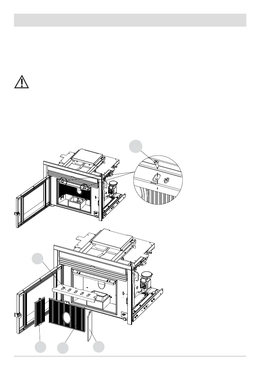 Clean the exchanger when the stove is cold. Open the rebox door and proceed as follows: