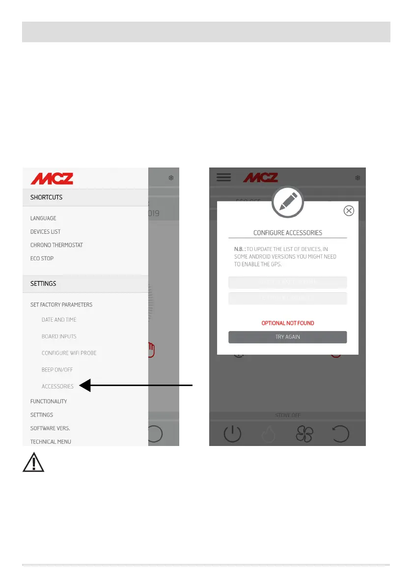 To do this, connect to the stove in home mode through the app. From the “settings” / “basic settings” menu, select the congure accessories
