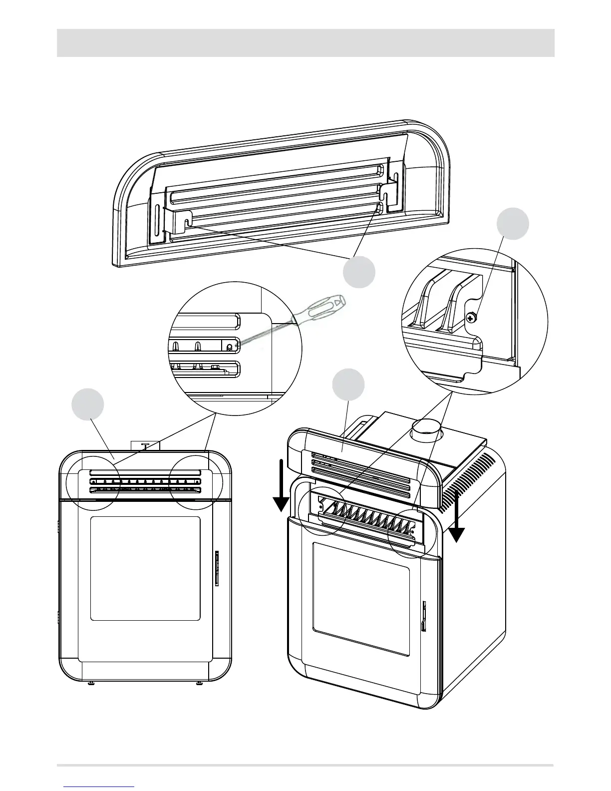 Take the front panel (ceramic or steatite) “G” and t the slots “P”, located at the back of the panel, on the screws “O” on the front of the