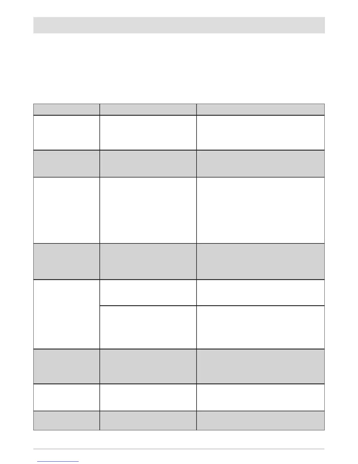 The following table describes the possible alarms indicated by the stove, associated to the respective code that appears on the emergency