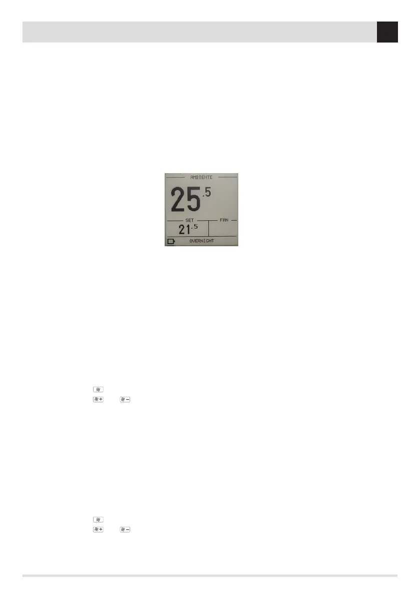 1. Premere il tasto 4 (+) / 5 (-) per impostare il livello di temperatura ambiente da raggiungere