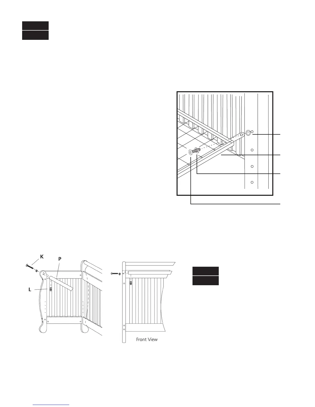 (L) et 2 des rondelles de blocage (T). Être sur que vous insérez une cheville en métal dans chaque trous sur