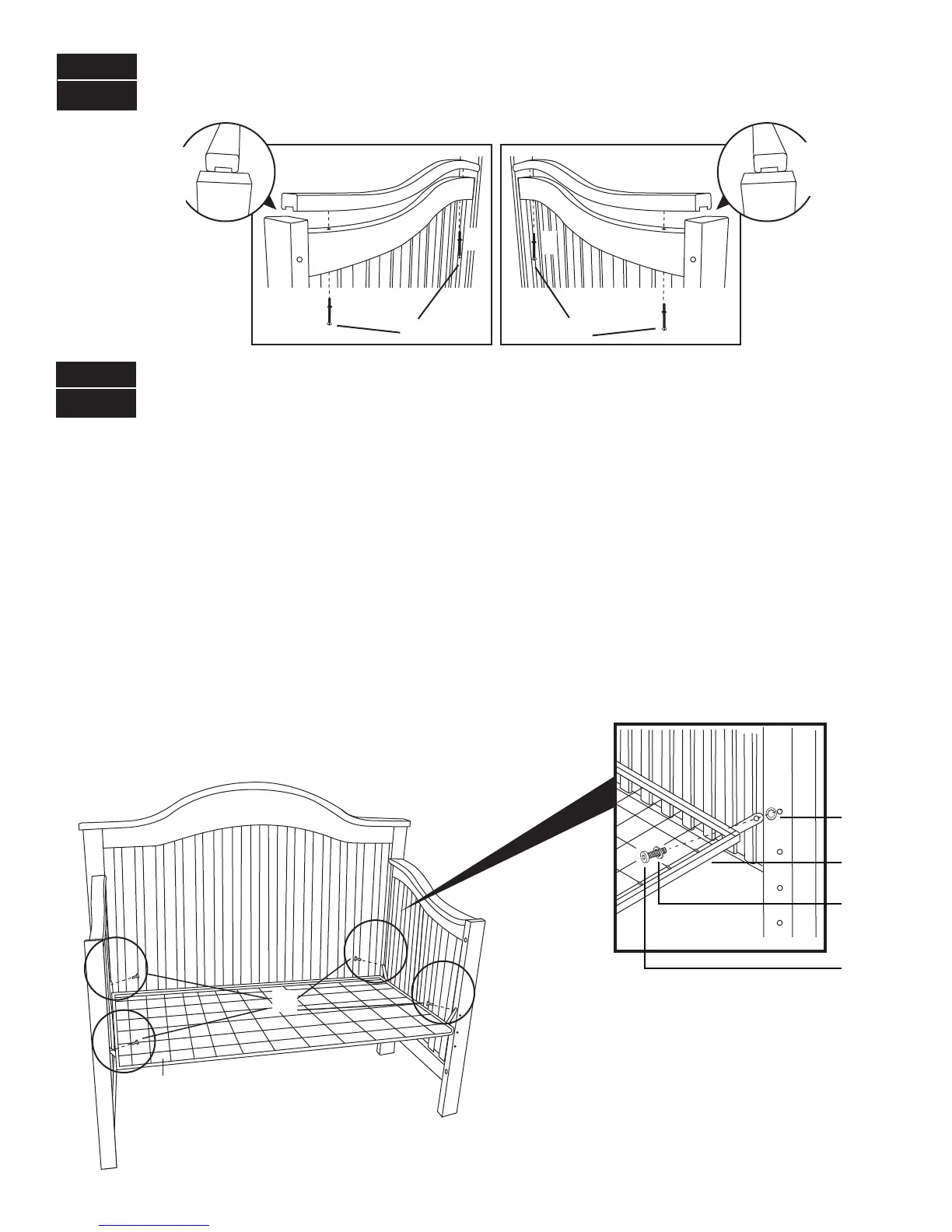 Joindre les traverses (F-1, F-2) aux panneaux latéraux (C-1, C-2).