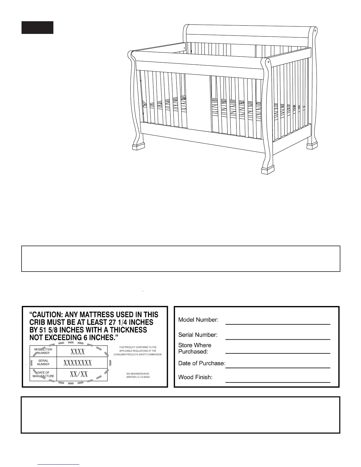 CAUTION: ANY MATTRESS USED IN THIS CRIB SHALL BE AT LEAST 27 1/4 INCHES BY
