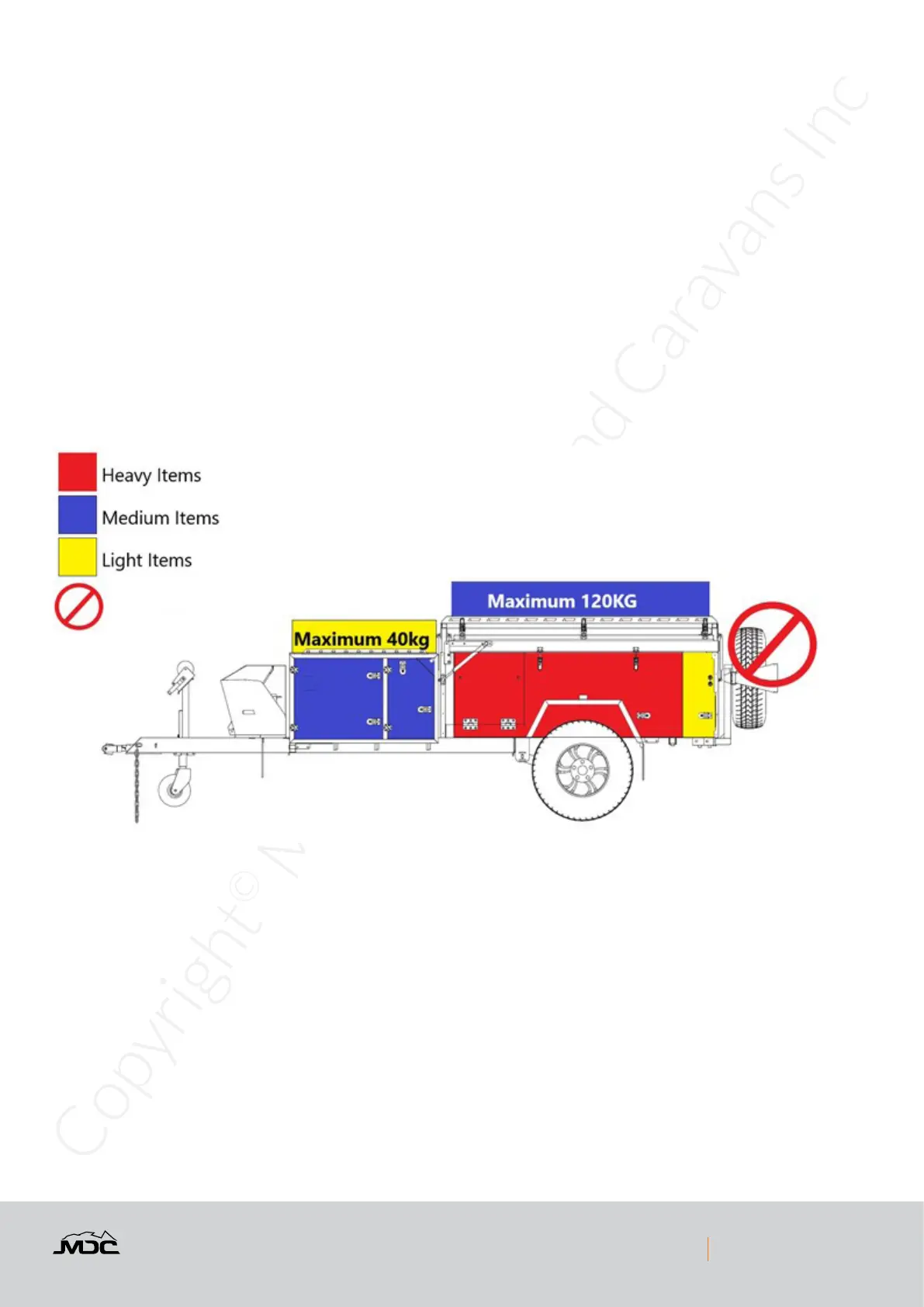 WARNING: BALL LOADING (DOWNWARD LOAD ON TOW HITCH) MUST NOT EXCEED 200KG OR THE