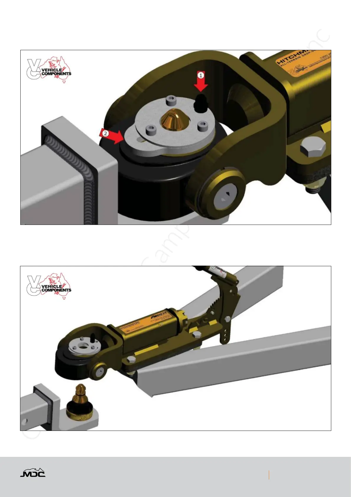 Push down the button 1 and push the locking mechanism back 2. When the locking mechanism is all the way back release