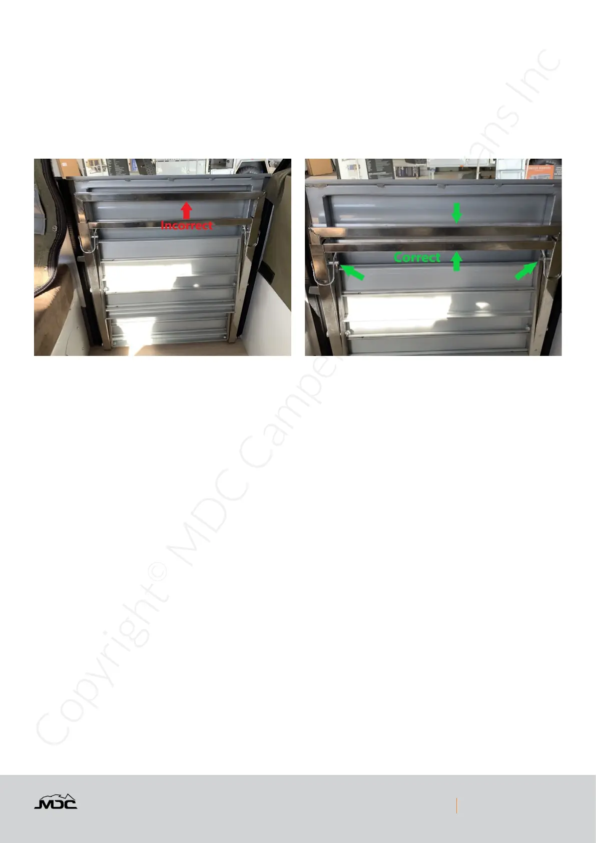 • Never allow any canvas or PVC to protrude through the seals when camper is packed, this may cause water to be