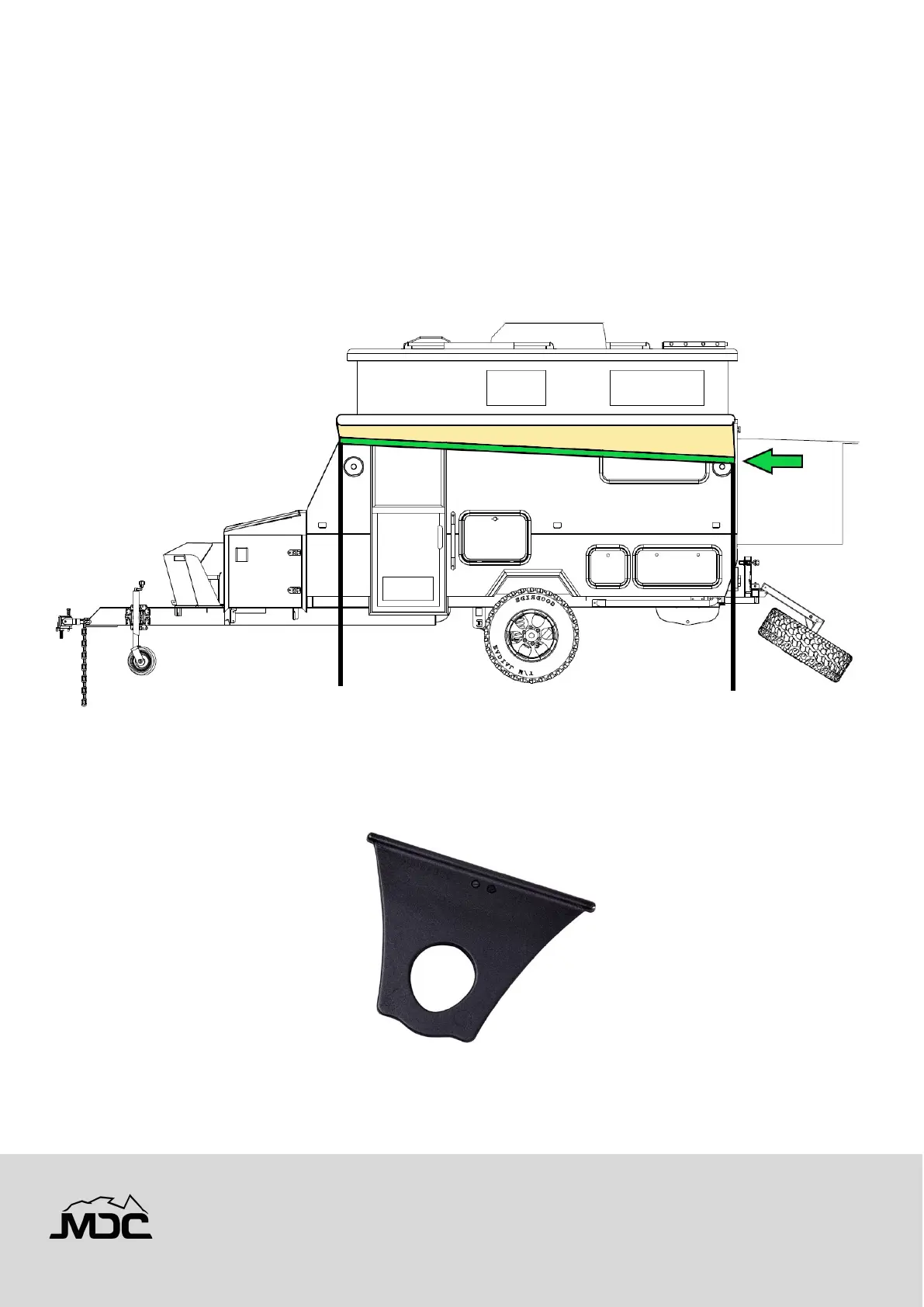 When extending the awning always support to front as it extends. Do not allow the awning to carry the full