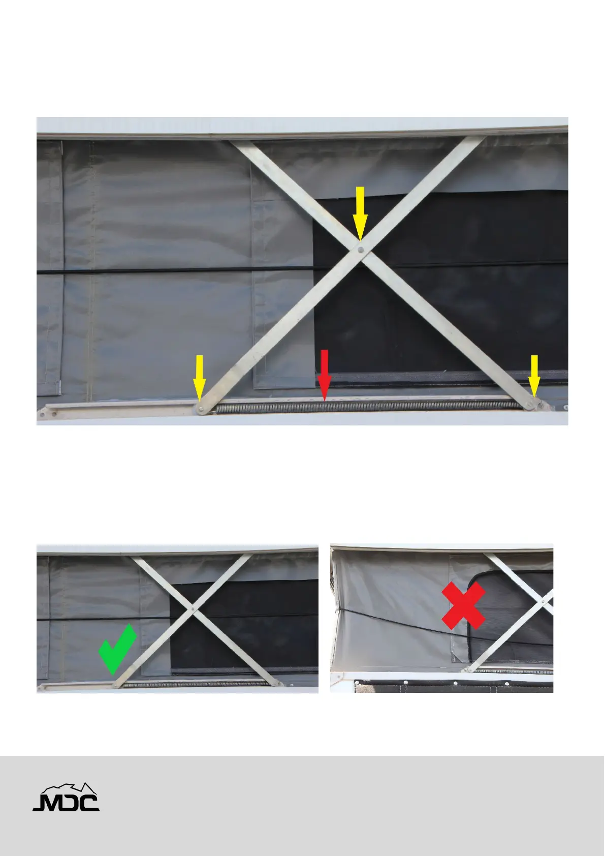 The elastic cord surrounding the PVC roof skirt is placed to ensure the skirt pulls inward when lowering the roof.