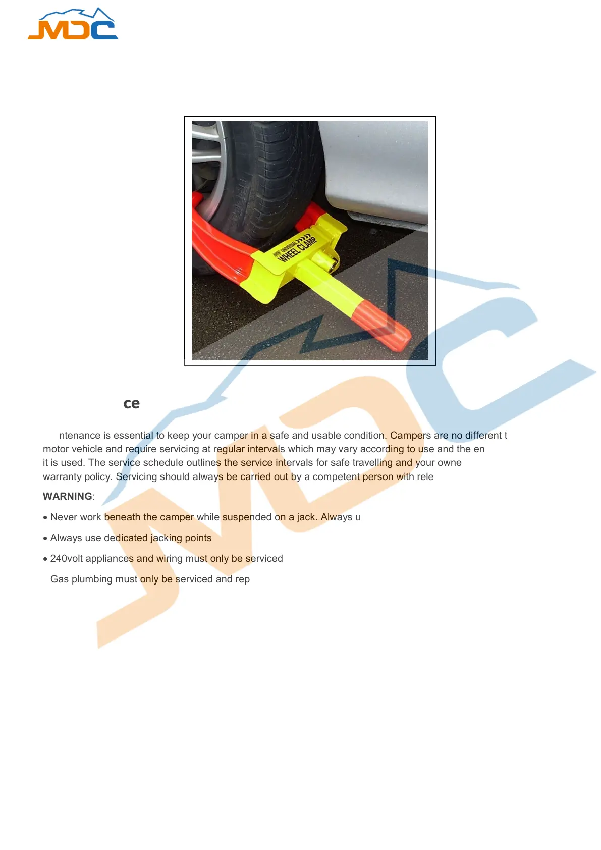 of a handbrake failure. For security a wheel clamp or and hitch lock are highly recommended.