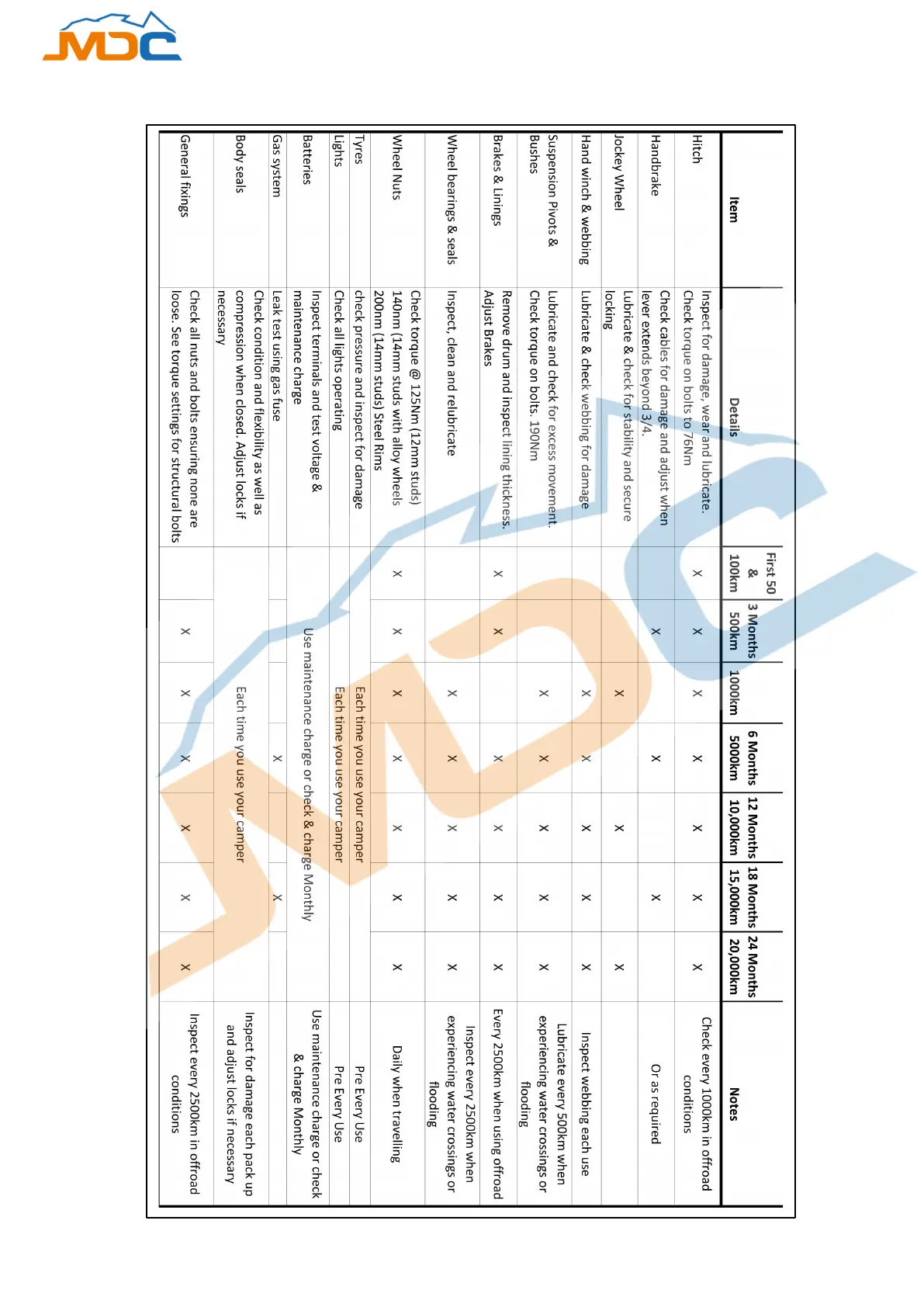MDC Jackson Forward Fold - Maintenance Schedule